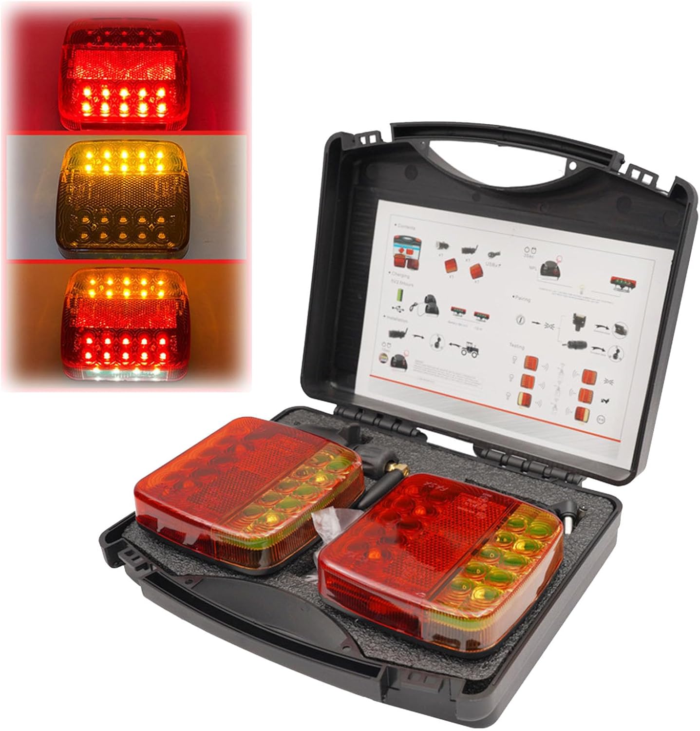 Magnetic Wireless Led Trailer Rear Lights Kit, USB-C Rechargeable Universal LED Turn Brake Parking Lights Indicator License Plate Lights for Trucks, Campers, RVs, Boats, Vans