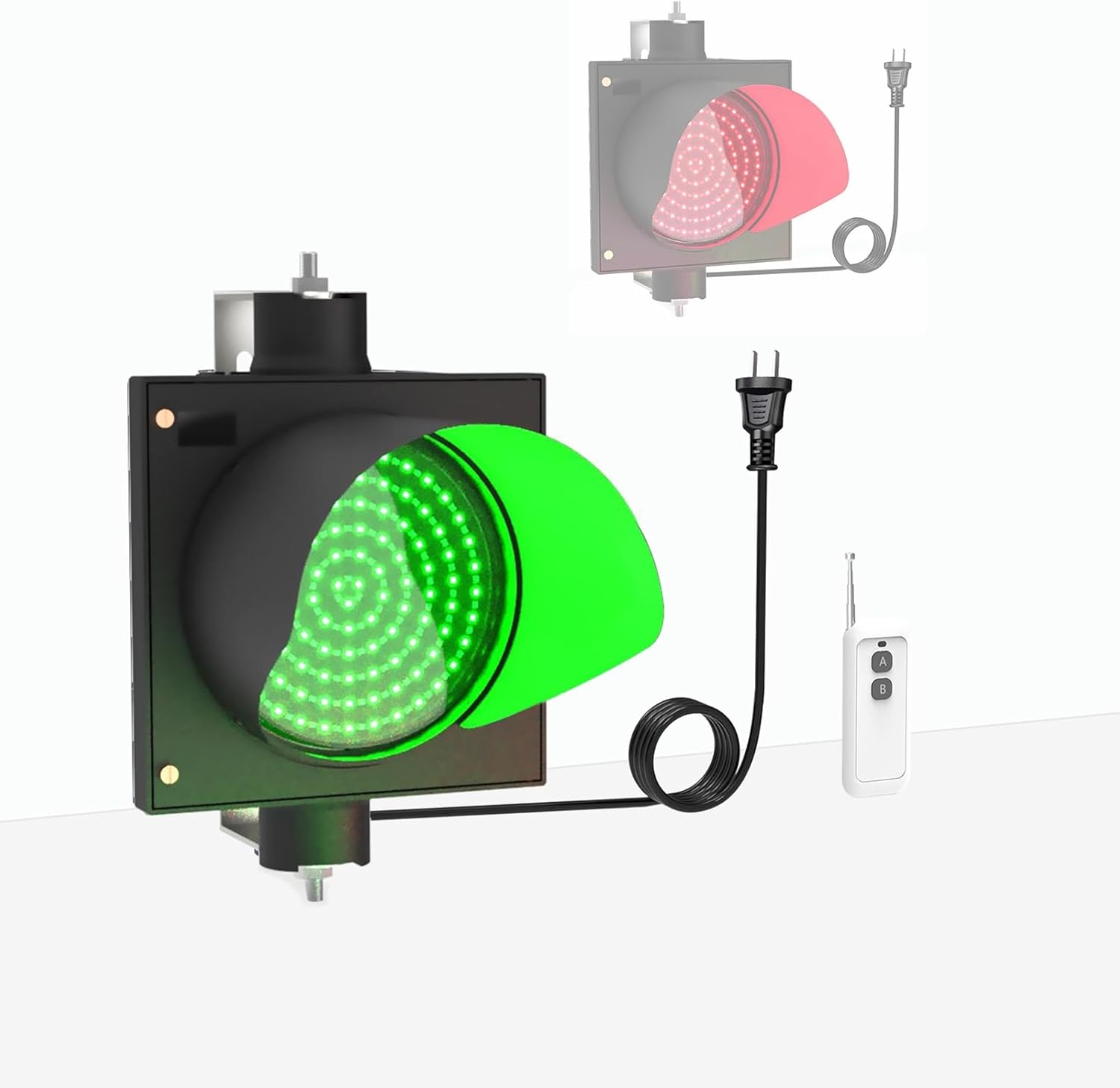 Single Module red/Green Traffic Light with Remote Control,AC 100-240V Red/Green Stop and Go Light,PC Housing Waterproof IP54 Indicator Warning,8in LED Traffic Stop Light(100M/328FT)