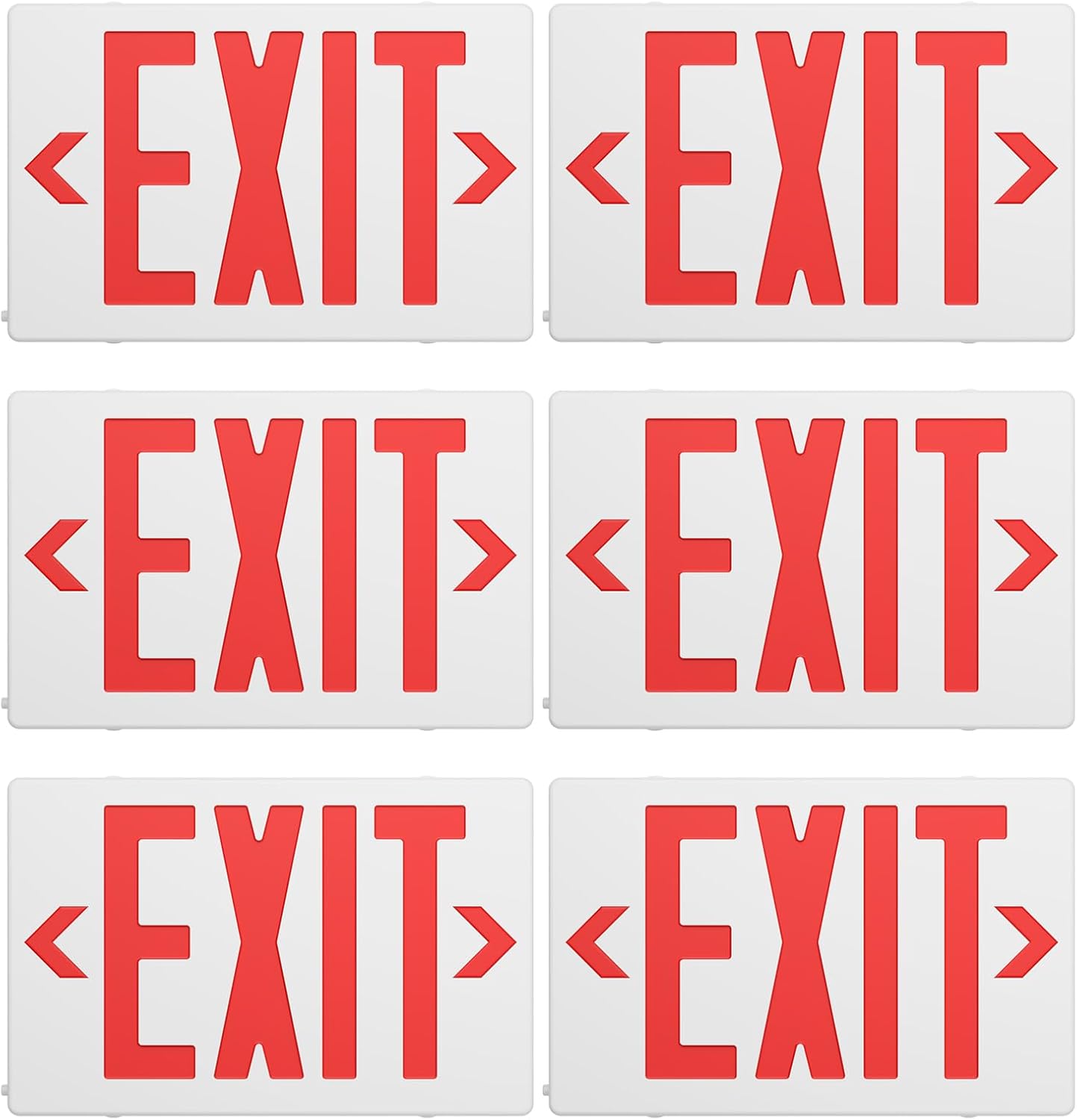 6 Packs LED Red Letter Exit Lights with Emergency Lights-UL Listed Double Face Two LED Adjustable Head Emergency Exit Sign with Battery Backup ABS Fire Resistance-120-277VAC Damp Location.