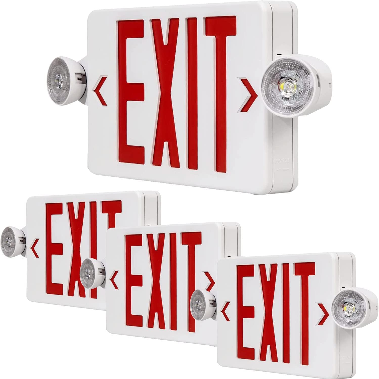LED Exit Sign Emergency Lights with Battery Backup, Red Letter Exit Sign Light with Two Adjustable LED Heads, US Standard Hardwired Emergency Lighting for Business, AC120-277V, UL Listed (4-Pack)