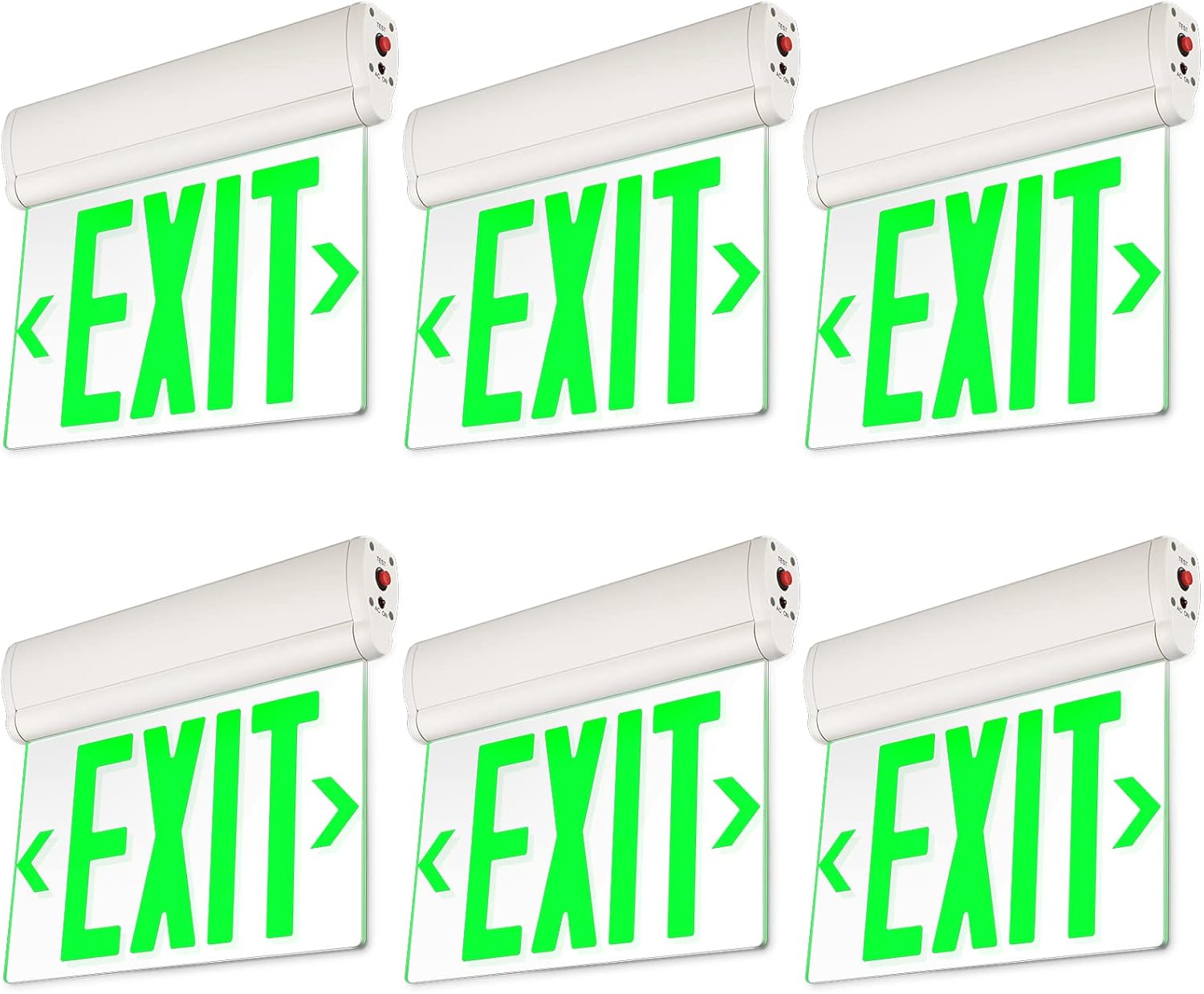LEONLITE Green Emergency Exit Sign, UL 924, LED Edge Lit Exit Sign, Hardwired Exit Lights with Battery Backup, Double Sided, Rotating Acrylic Clear Panel, Top/Side/Wall Mount, AC 120/277V, Pack of 6