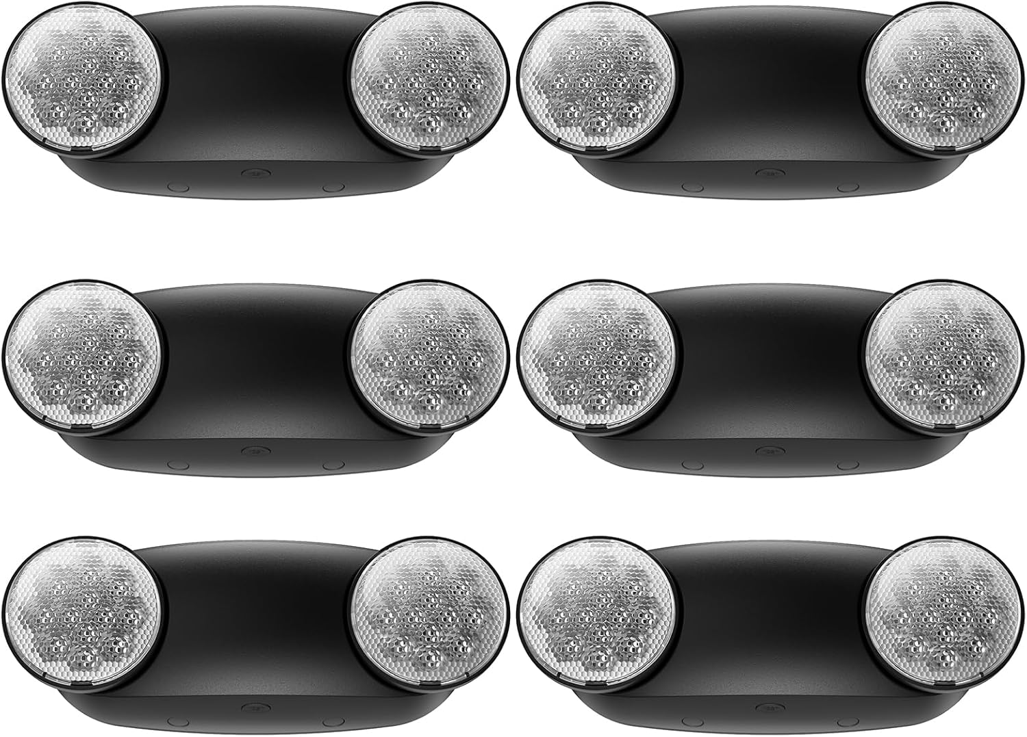 6 Packs Black Emergency Lights with Battery Backup Two Adjustable Bug Eye -UL 924 Certified Emergency Exit Signs-120-277VAC/Commercial Emergency Lights Fixtures/Hardwired Indoor Exit Lights.