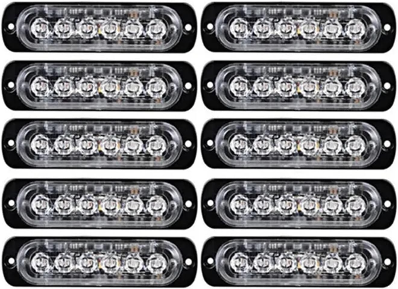 10PCS Strobe Light 12v-24v 6LED Truck Trailer Lights Stroboscopes LED Car Light Emergency Warning Hazard Flash Light(AL121808F-04a/RG+Two Lights)