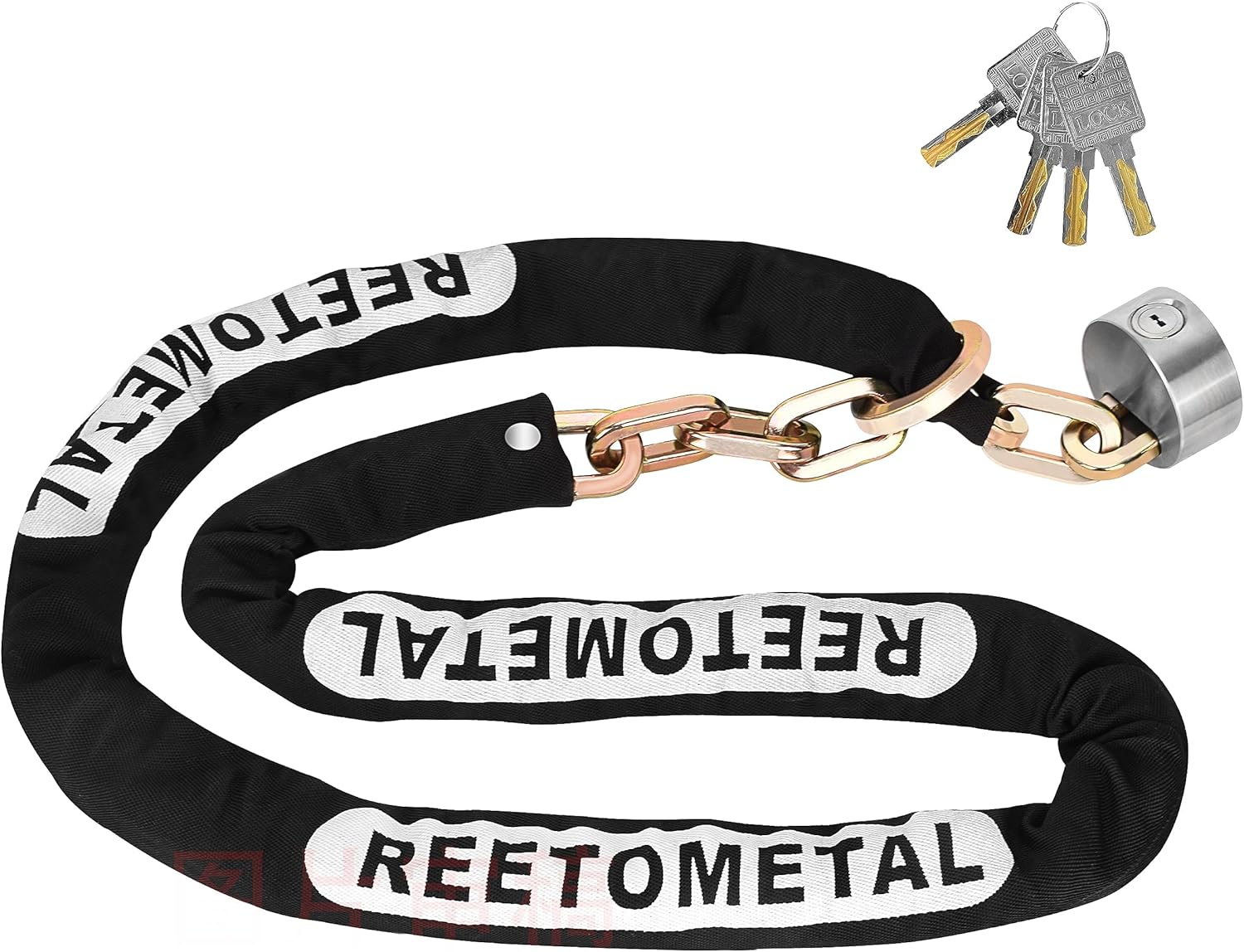 AKM Motorcycle Chain Lock Anti-Theft 8.2ft/250cm Super Long Durable 12mm Thick With 4 Keys Security 16mm U Lock for Motorcycles, Containers, Trailers, ATV