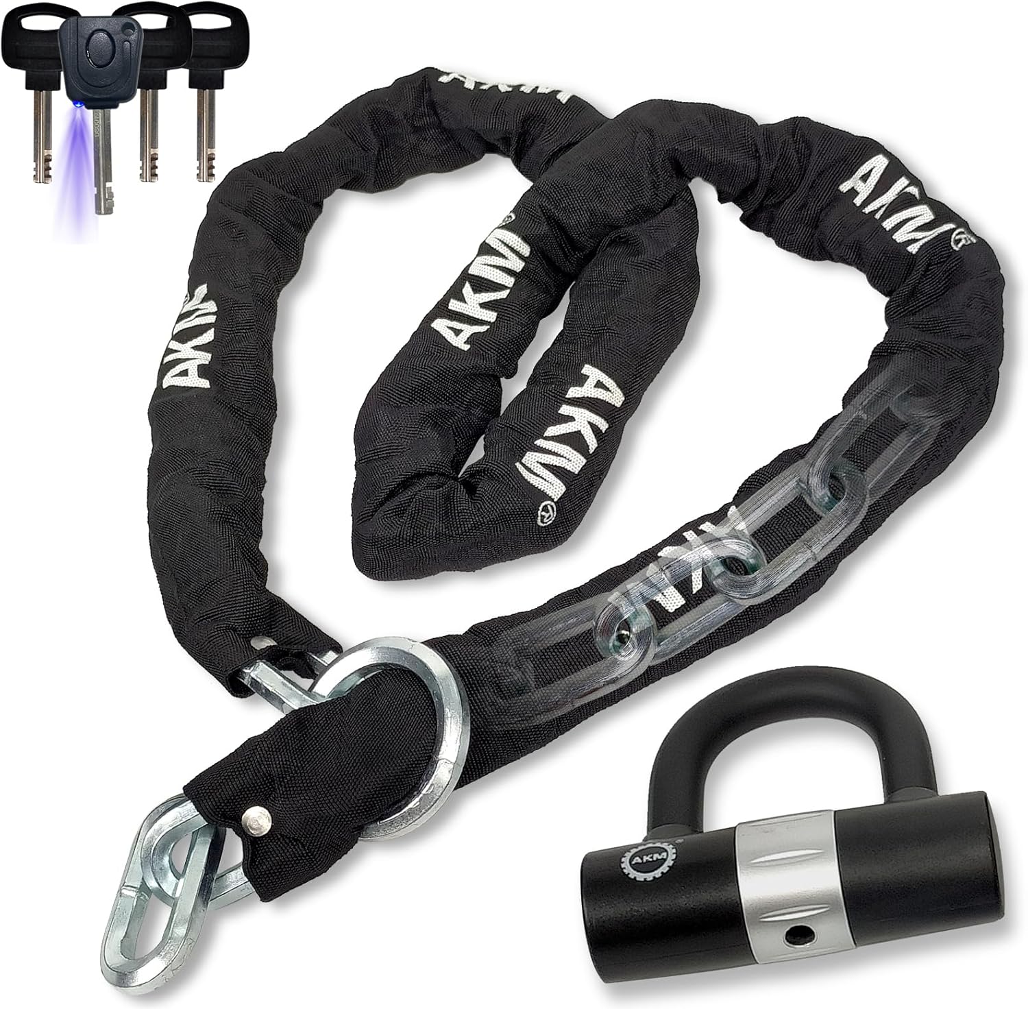 AKM Motorcycle Lock Chain Lock Anti-Theft 6.56ft/250cm Super Long Durable 12mm Thick Bike Chain Lock with 4 Keys Security 16mm U Lock,for Motorcycles,Containers,Trailers,ATV