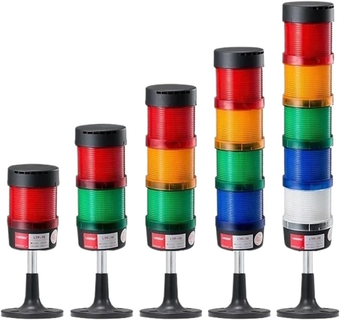 Stack Lamp Emergency Light Straight Rod Disk Base LED Warning Light Tower DC12V/24V AC110V/220V/380V No Buzzer(5Layers 220V no Buz)