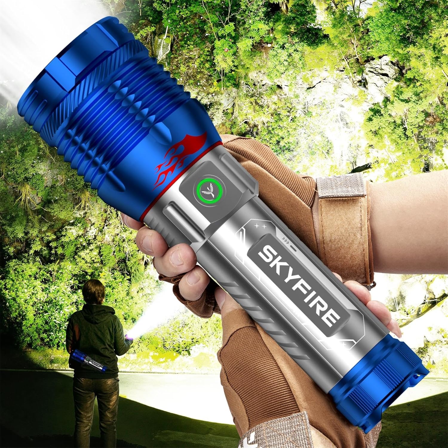 SKYFIRE 16500mAh Flashlights High Lumens with Ignition Lens, Rechargeable Flashlight 96-Hour Runtime 2000-Meter Beam Distance 3000 Lumens Super Bright for Camping Essentials, Outdoor, Home&Gifts