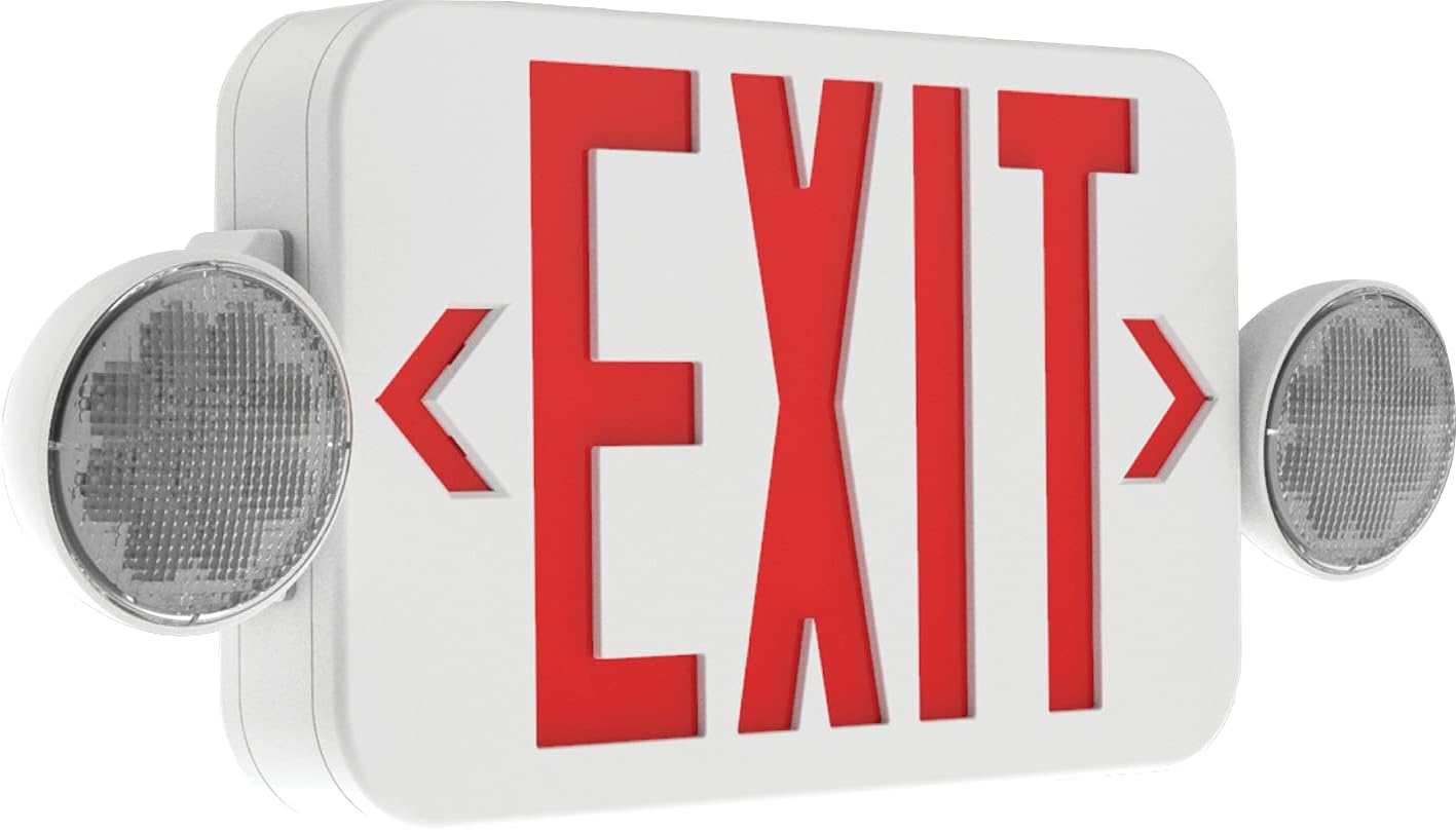Hubbell Lighting CCRRC Emergency Exit Sign, Remote Compatible Combination Emergency Light and Exit Sign for Stair-Wells, Hallways, Offices, 2 Fully Adjustable LED Heads, White with Red EXIT Letters