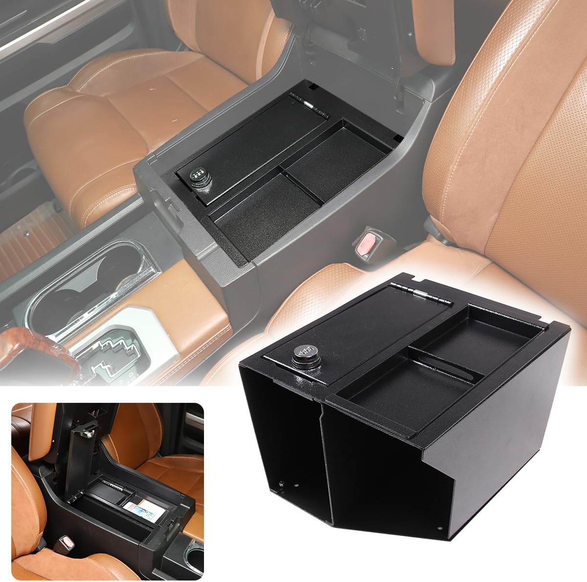 Car Center Console Safe Lockbox Insert Lock Vault Box Extra Storage Compatible with Toyota Tundra 2014-2021 Pickup Trucks Car Safety Security Anti-Theft Locking Device (Style A)