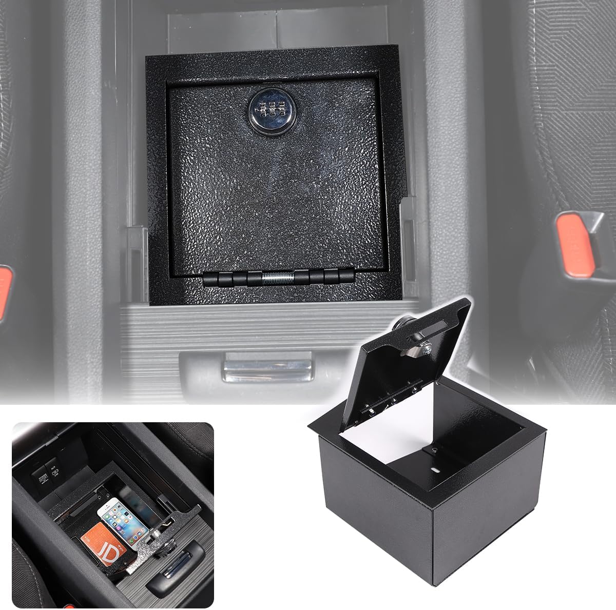 Carbon Steel Car Center Console Safe Lockbox Insert Lock Vault Box Extra Storage Compatible with Toyota Tacoma 2024 2025+ Pickup Trucks Car Safety Security Anti-Theft Locking Device