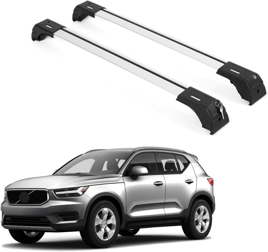 ERKUL Roof Rack Cross Bars for Volvo XC40 2019-2026 | Aluminum Crossbars with Anti Theft Lock for Rooftop | Compatible with Flush Rails - Silver