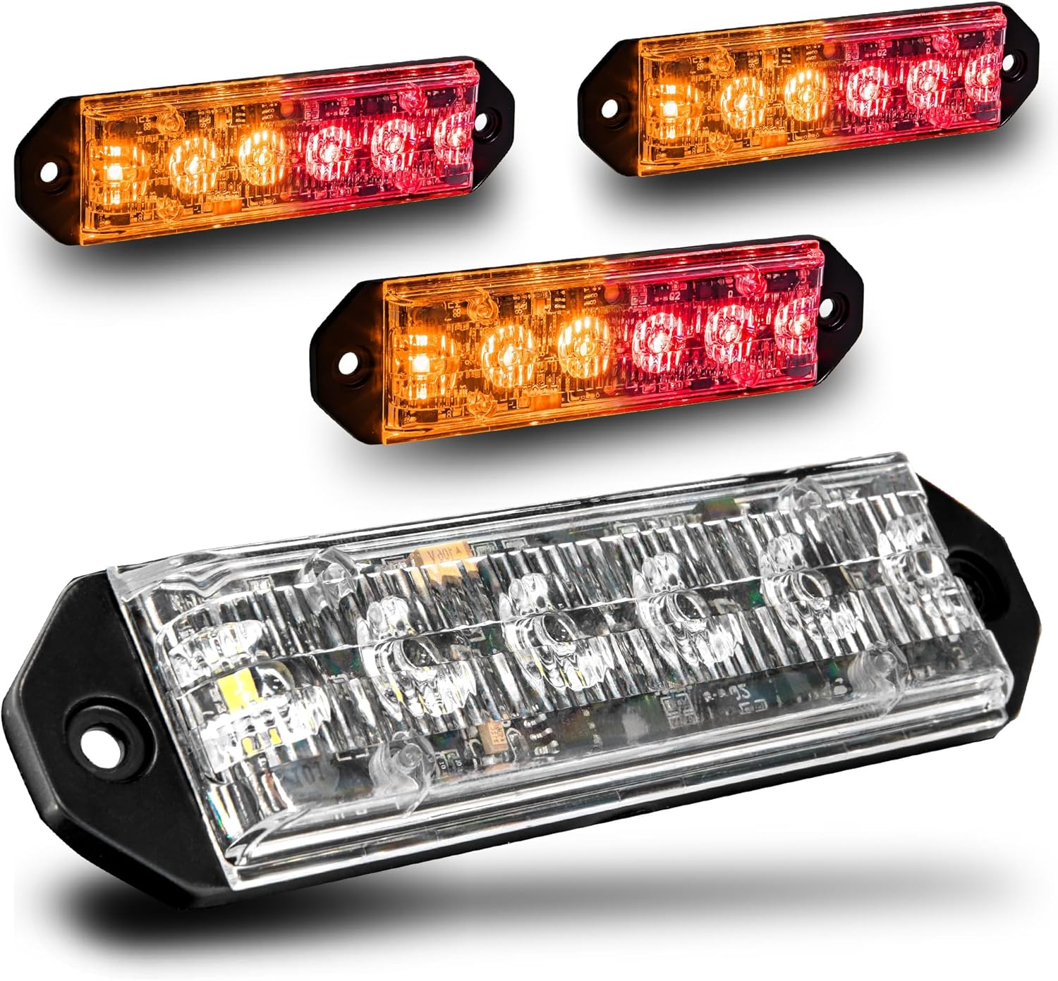 LAMPHUS 4pc PlanarFlash 6W Amber Red LED Surface Mount Police Grill Strobe Warning Lights [SAE Class 1] 12V Ultra Slim Flat Grille Flashing Emergency Fire Light for Firefighter Vehicle Truck