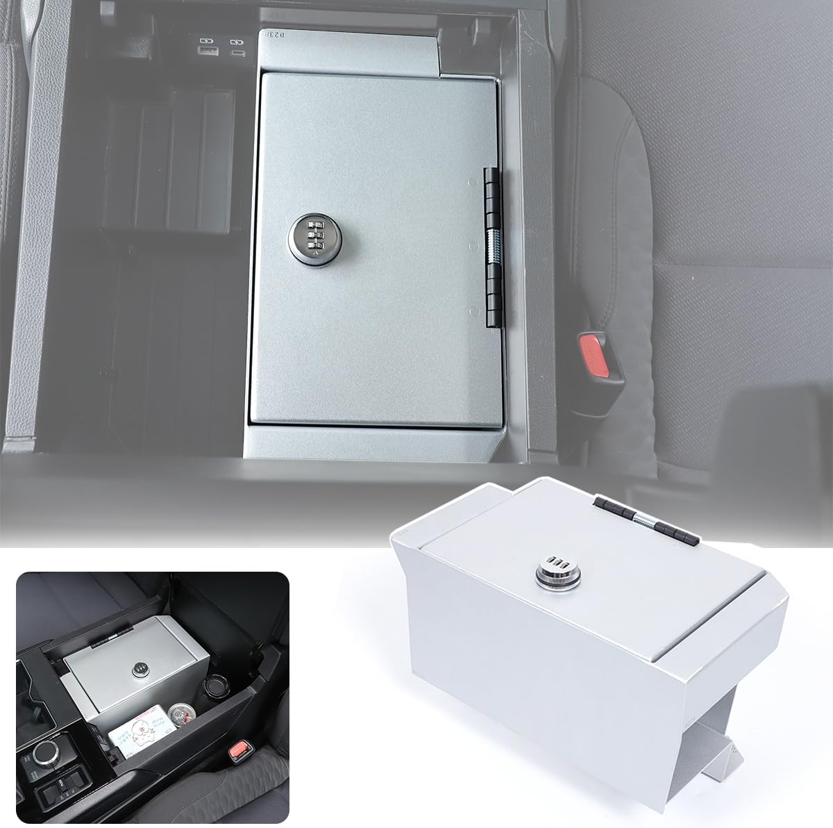 Car Center Console Safe Lockbox Insert Lock Vault Box Extra Storage Compatible with Toyota Tundra 2022 2023 2024 2025+ Pickup Trucks Car Safety Security Anti-Theft Locking Device (Silver)