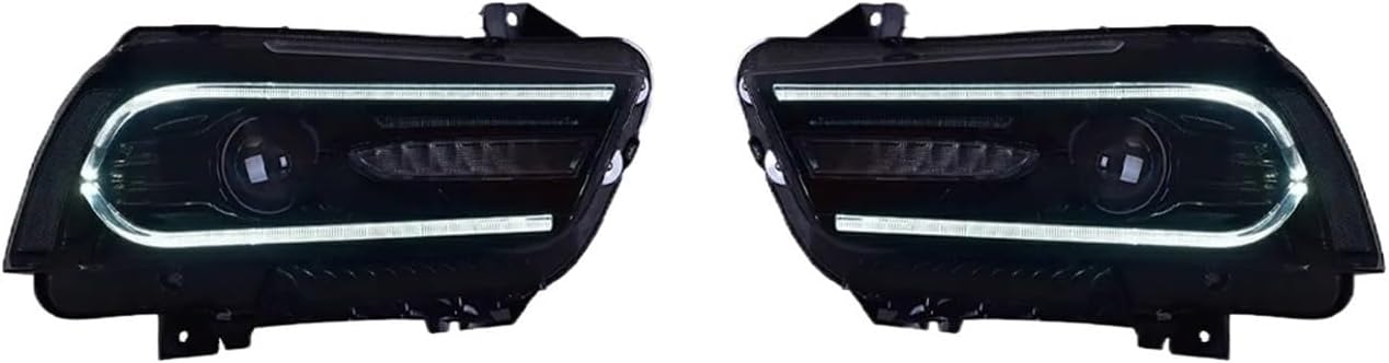 Auto Accessories LED Projector Headlights Compatible With Dodge Charger 2011-2014 With Dual Beam Lens, Sequential Turn Signals DRL Bars(No Bulb)