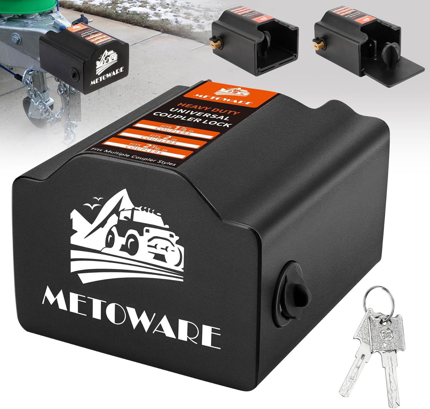 METOWARE Universal Trailer Hitch Coupler Lock, Heavy Duty Anti-Theft Trailer Ball Lock Fits 1-7/8", 2", 2-5/16" Couplers, Upgraded Push Pull Type Trailer Tongue Lock for RV, Boat, Truck, Trailer, ATV