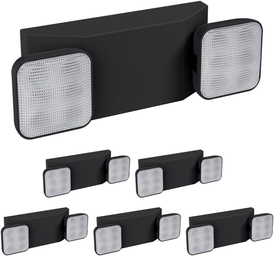 Ciata 6 Pack Black Led Emergency Lights with Battery Backup, for Home Power Failure, Hardwired with Adjustable Heads, Backup Battery, Emergency Lights for Business, Indoor Emergency Lights