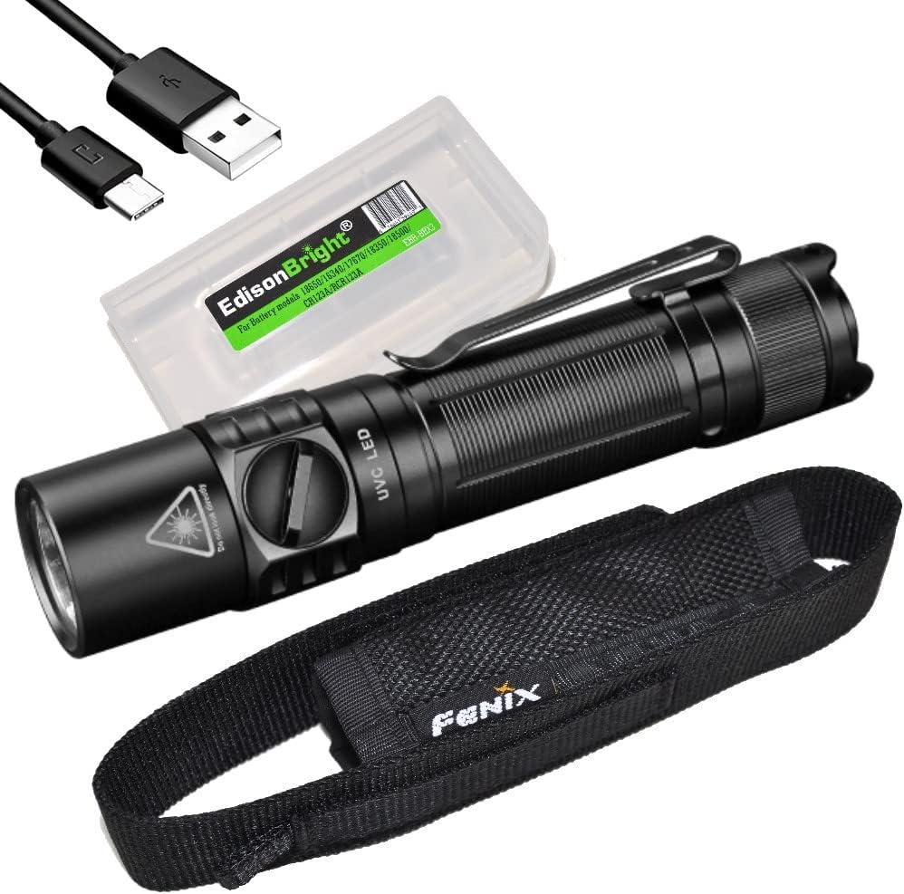 Fenix LD32 UVC 1200 Lumen USB Rechargeable LED Flashlight with Built in UV-C Light Bundle with EdisonBright Battery Carrying case