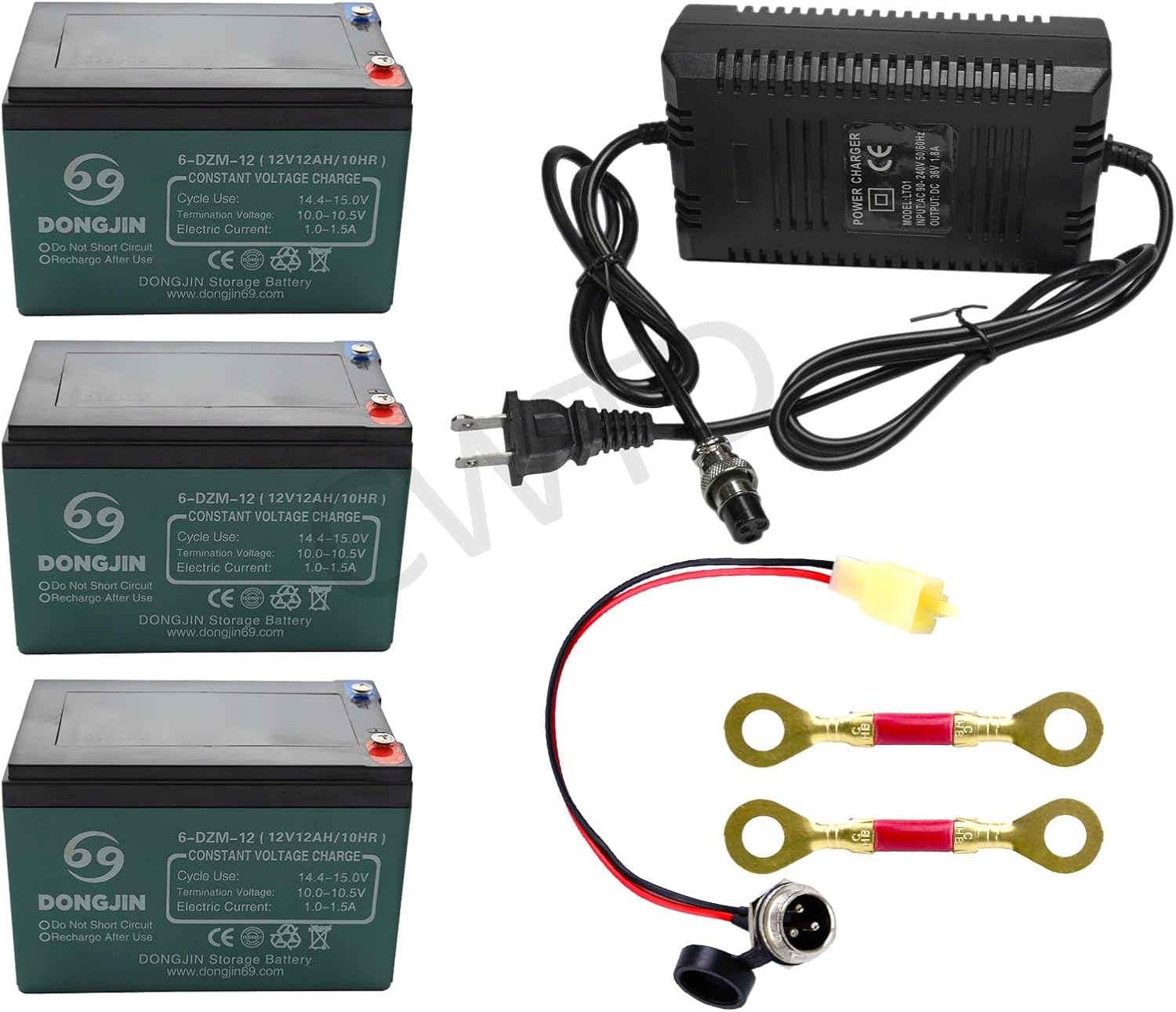 12V 12Ah Sealed Lead Acid Rechargeable Battery Kit (3Pack) with 36V Charger UL Certified Maintenance-Free for Powersports Electric Bikes Scooters Mobility Devices