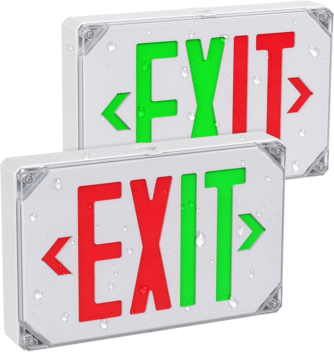 Wet Location Exit Sign,Exterior Weatherproof LED Exit Light with Battery Backup,Switchable Red/Green Colors,Double Sided Emergency exit sign,Outdoor Waterproof Hardwired Emergency Exit Light,120V/277VAC,UL Listed(2 Pack)