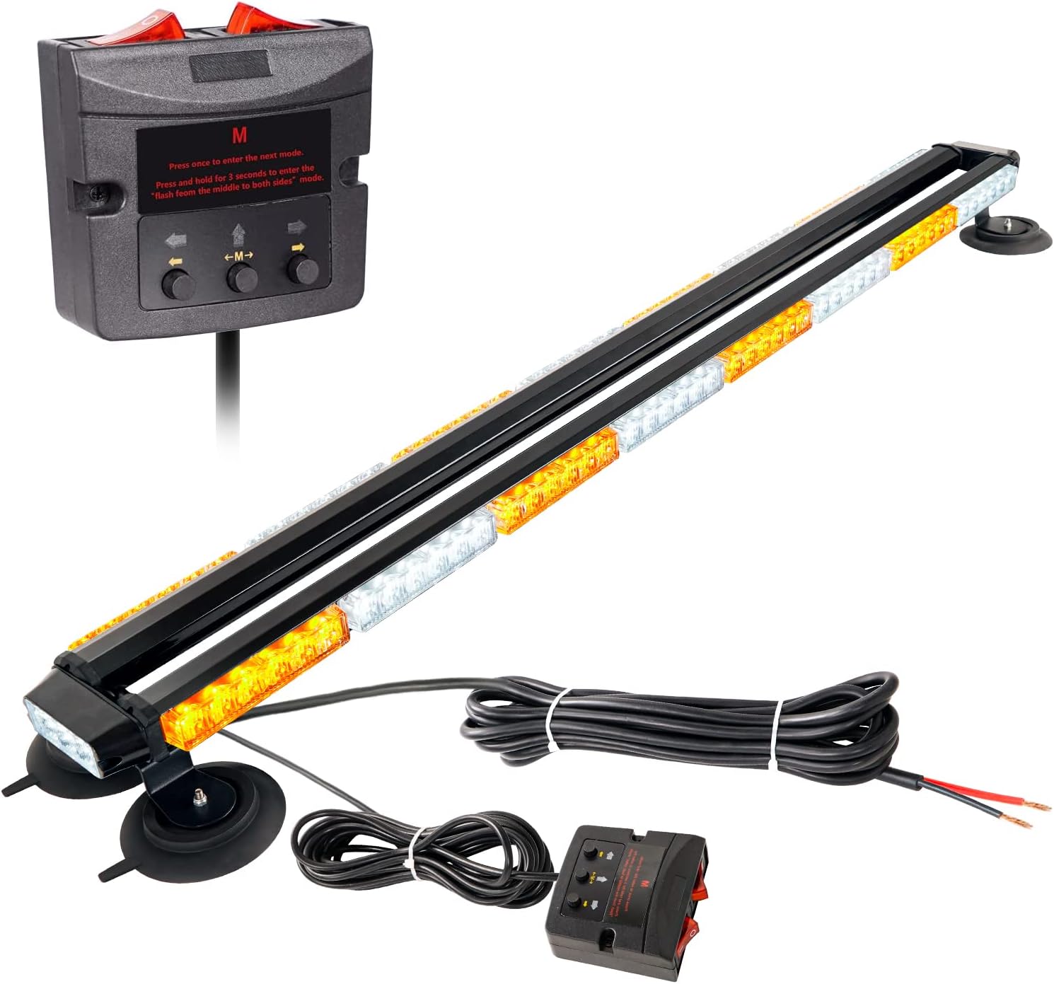 ASPL 49.2'' Emergency Warning Strobe Lights 102 High-Intensity LED Flashing Waterproof Flashing Lights with 28 Strong Magnets for Tow Trucks Pickup Snowplow Vehicles (Amber/White)