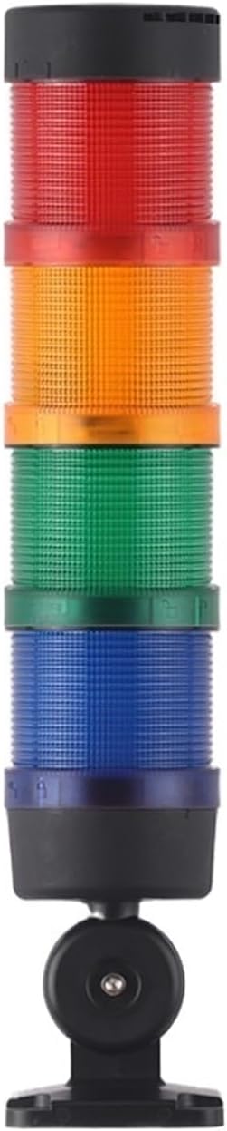 70mm Signal Alarm Caution Indicator Industrial Stack Tower Warning Light 24V220V Steady/Flash/Rotary Lamp LED for Machine Buzzer(4 Layer,DC 24V)