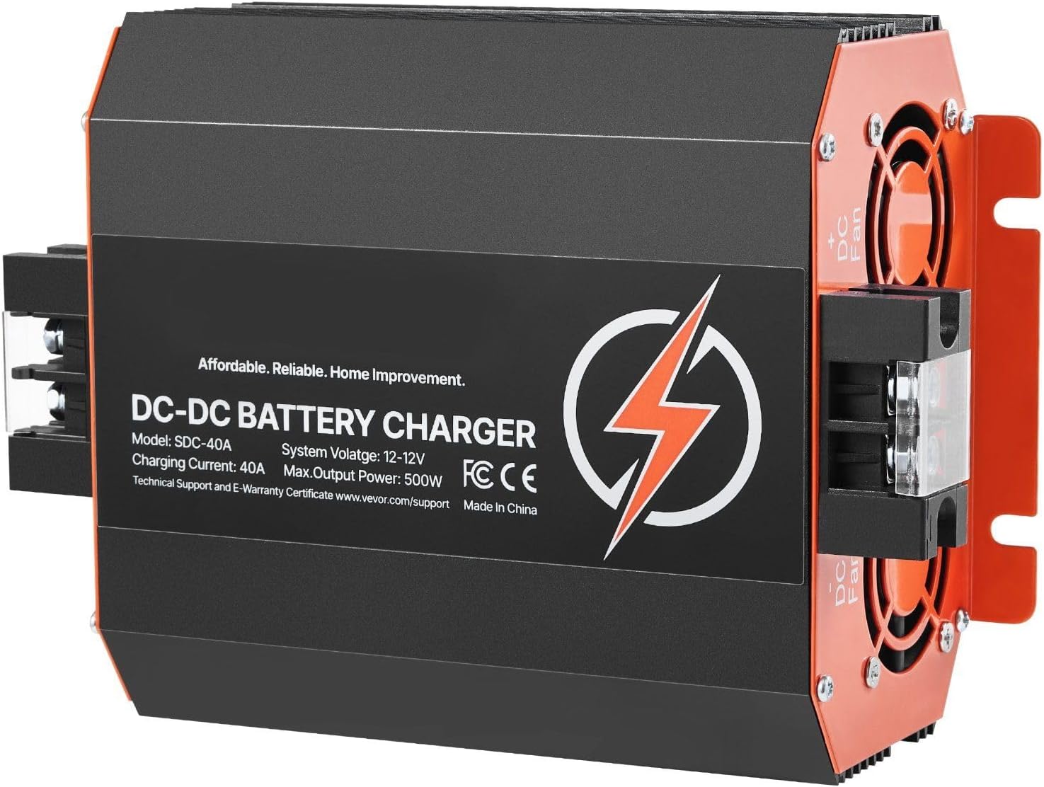 500W On-Board DC to DC Battery Charger 12V 40A, Smart Multi-Stage Charger for Lithium & Lead-Acid (AGM/Gel/Flooded), Compact for RV, Commercial Vehicle, Boat & Yacht