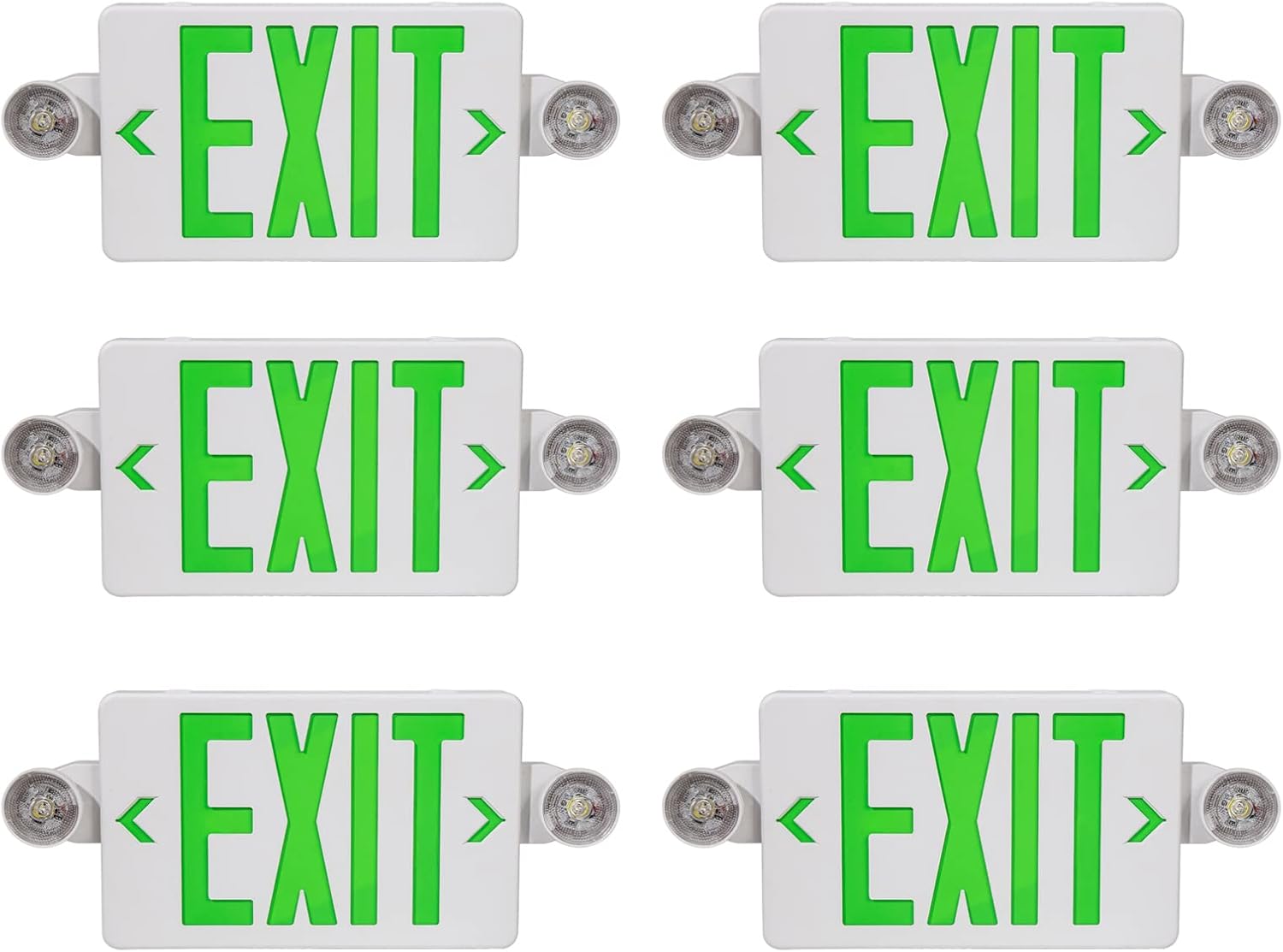 TANLUX Green Exit Sign with Emergency Lights, LED Emergency Exit Light with Battery Backup, UL Listed, AC 120/277V, Commercial Emergency Lights Combo for Business - 6 Pack