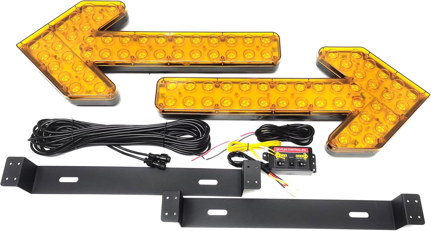 12V-24V LED Signal Light Bar Arrow Guide Lights Emergency Evacuation Warning Light Watering Cart Sweeper Work Car Construction Vehicle Pilot Light Wrecker Indicator Light (Amber lampshade Amber)