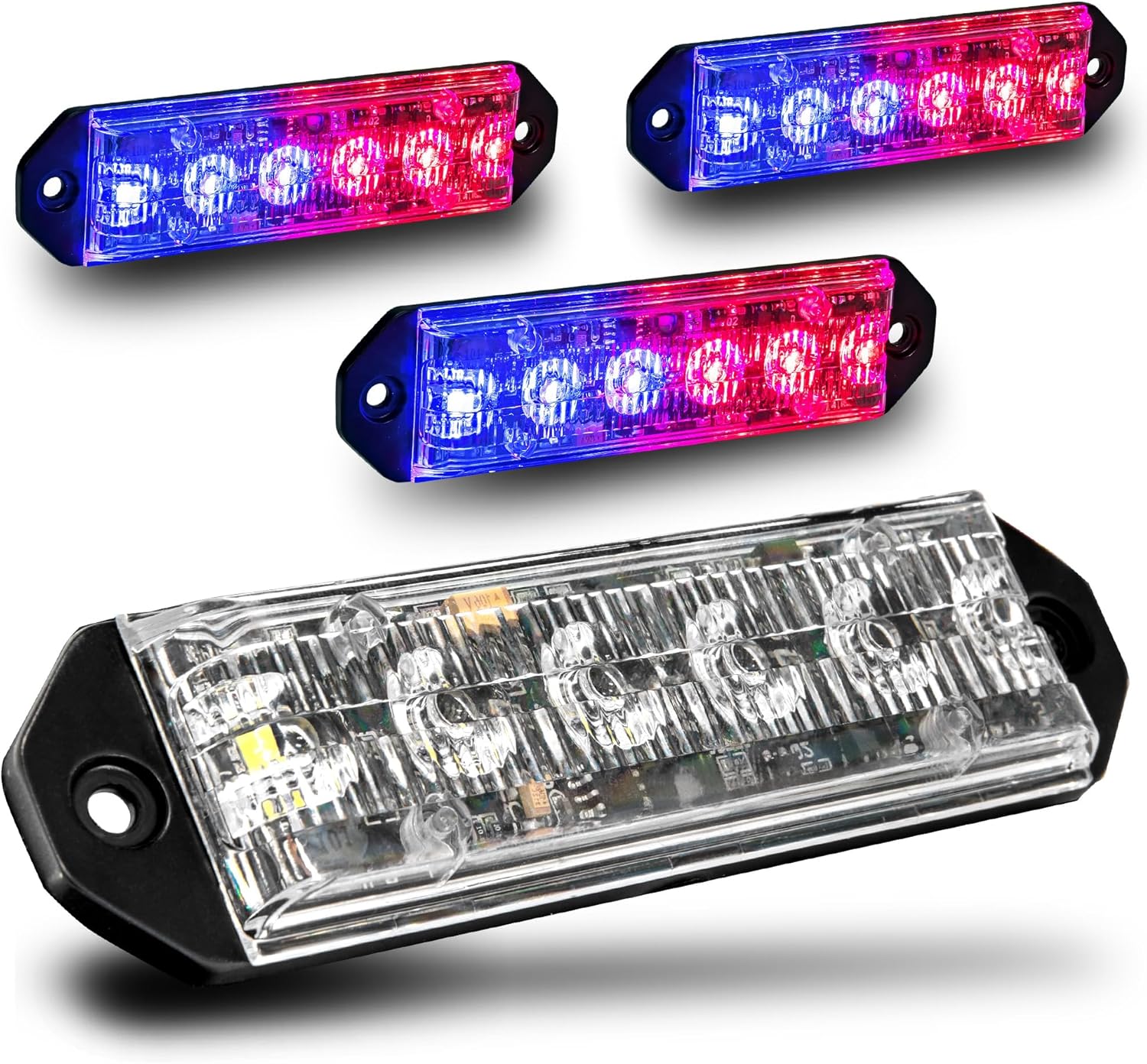 LAMPHUS 4pc PlanarFlash 6W Blue Red LED Surface Mount Police Grill Strobe Warning Light [Sync-able] 12V Ultra Slim Flat Grille Flashing Emergency Fire Lights for Cop Undercover Vehicle Car Truck