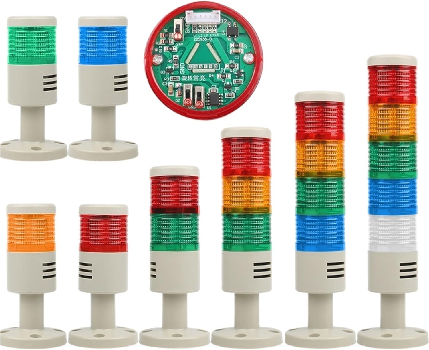 1pcs Industrial Warning Stack Light Red Amber Green for Machine DC12/24V Steady/Flash LED AC220V Signal Alarm Caution Indicator Lamp(5 Layers with Buzzer,DC 12V)