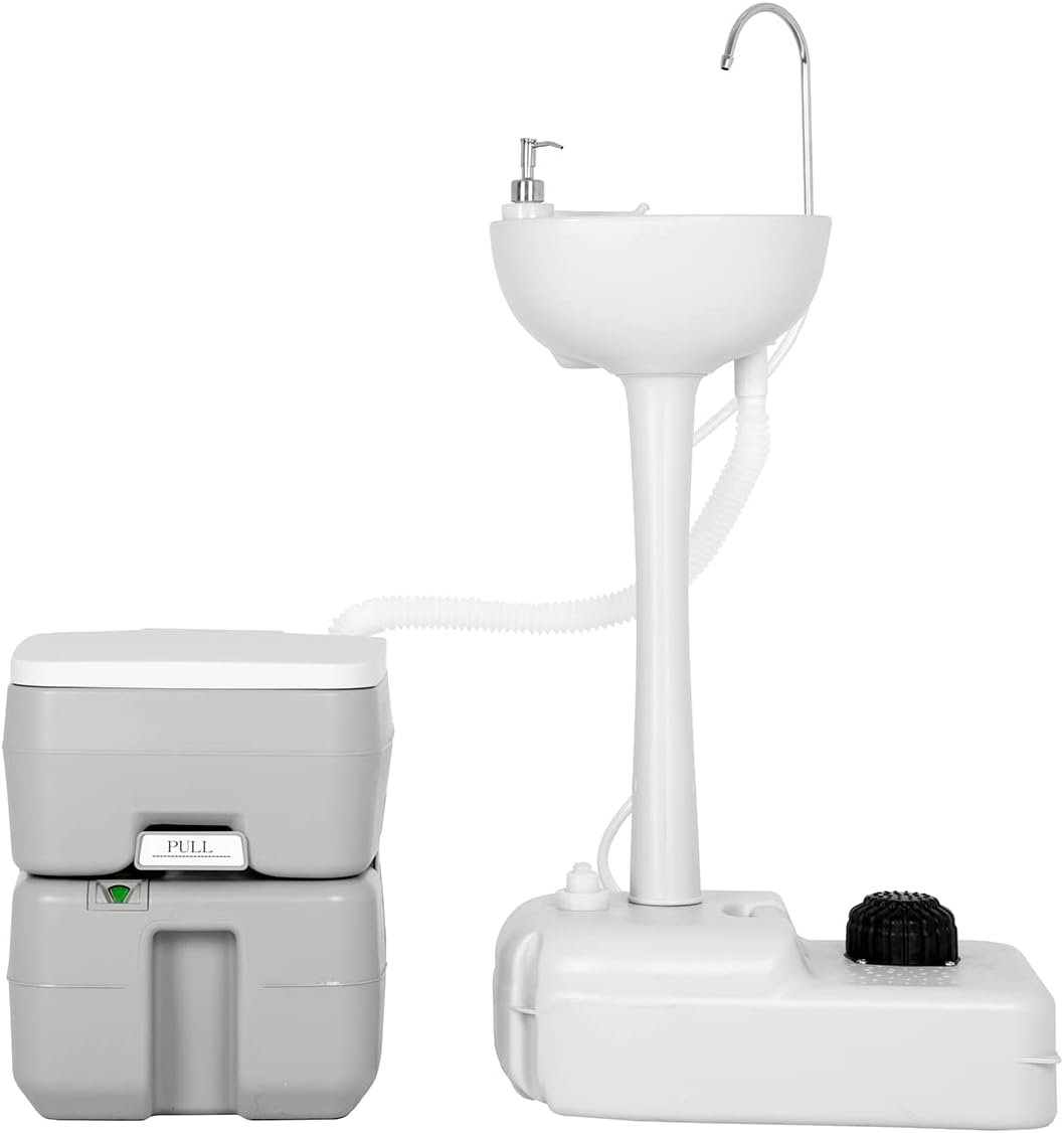 S AFSTAR Portable Sink and Toilet Combo, 4.5 Gal Rolling Handwashing Station and 5.3 Gal Flushing Toilet with Level Indicator, Lightweight Detachable Outdoor Sink & Toilet for Camping RV Travel Boat