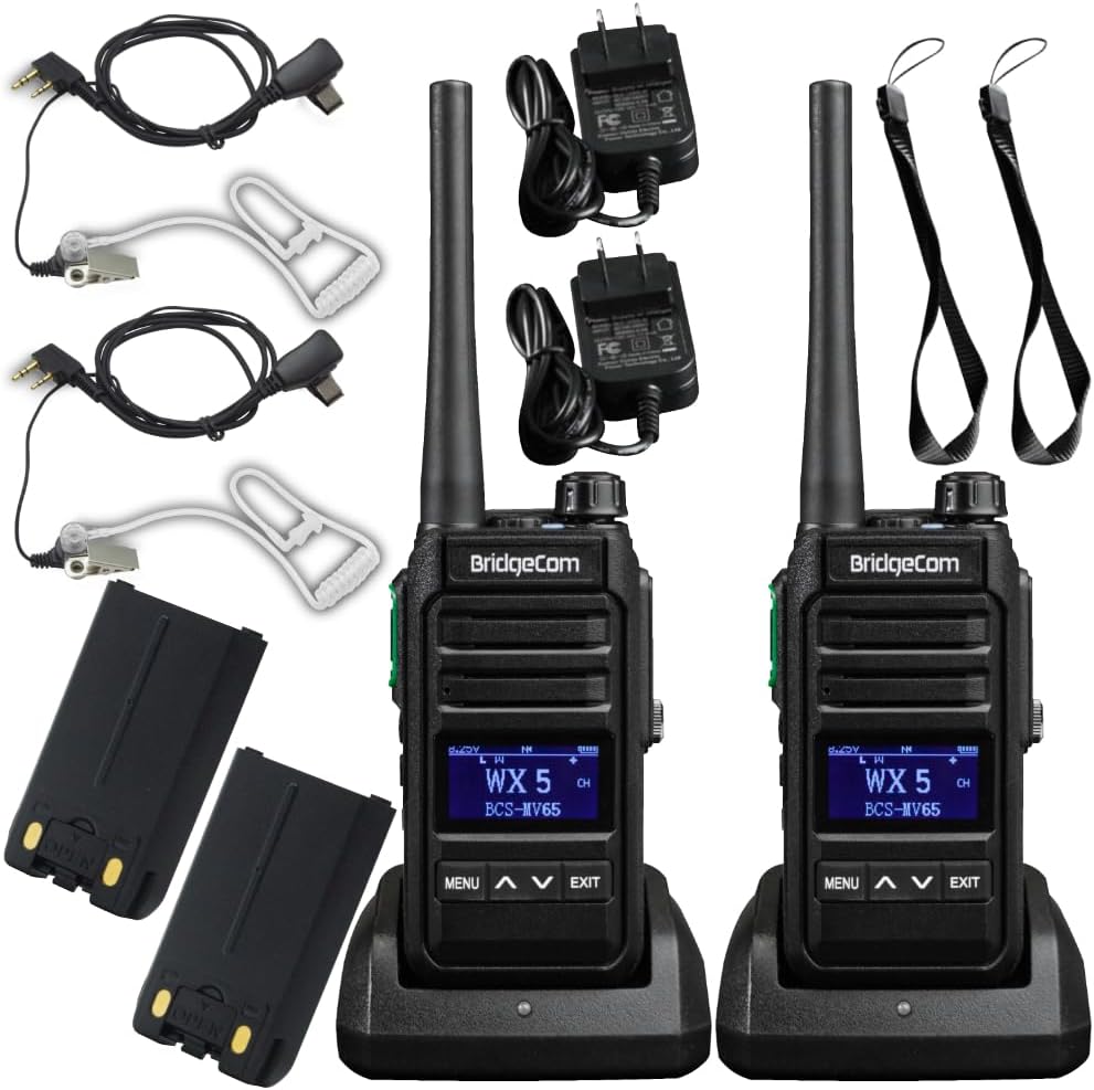 BridgeCom MV-65 Rugged Waterproof Heavy Duty Metal-Frame Walkie Talkie, VHF Long Range, Rechargable Long Lasting Battery, Crisp Clear Audio, Construction, School, Business, Retail, Hunting, Outdoor