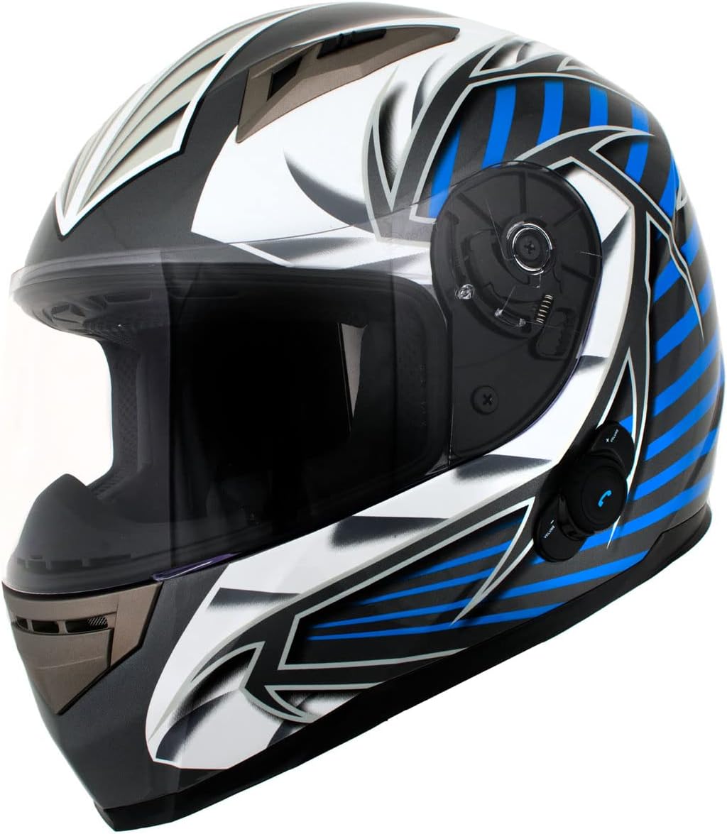 Milwaukee Helmets H512 Titanium and Blue Chit-Chat Full Face Wireless Motorcycle Helmet-Stream Music-Phone Calls