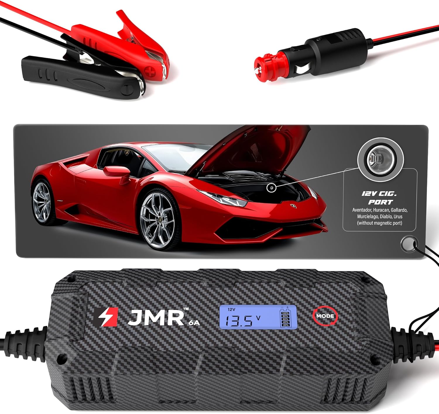 JMR Battery Charger for Lamborghini Aventador Huracan Gallardo Murcielago Trickle Charger Conditioner Maintainer (12V Cig Port, No Lithium Mode)