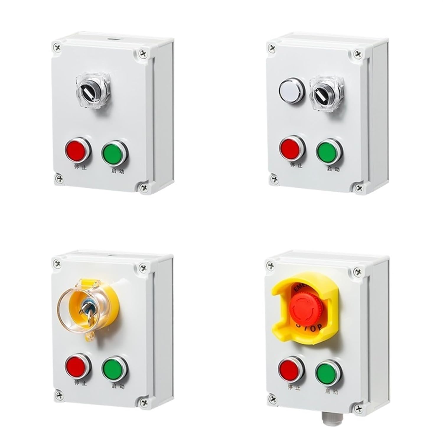 Switch Control Box Emergency Stop Waterproof Button Indicator Light Box Electrical Box Three Four Position Start-up Stop(Purple)