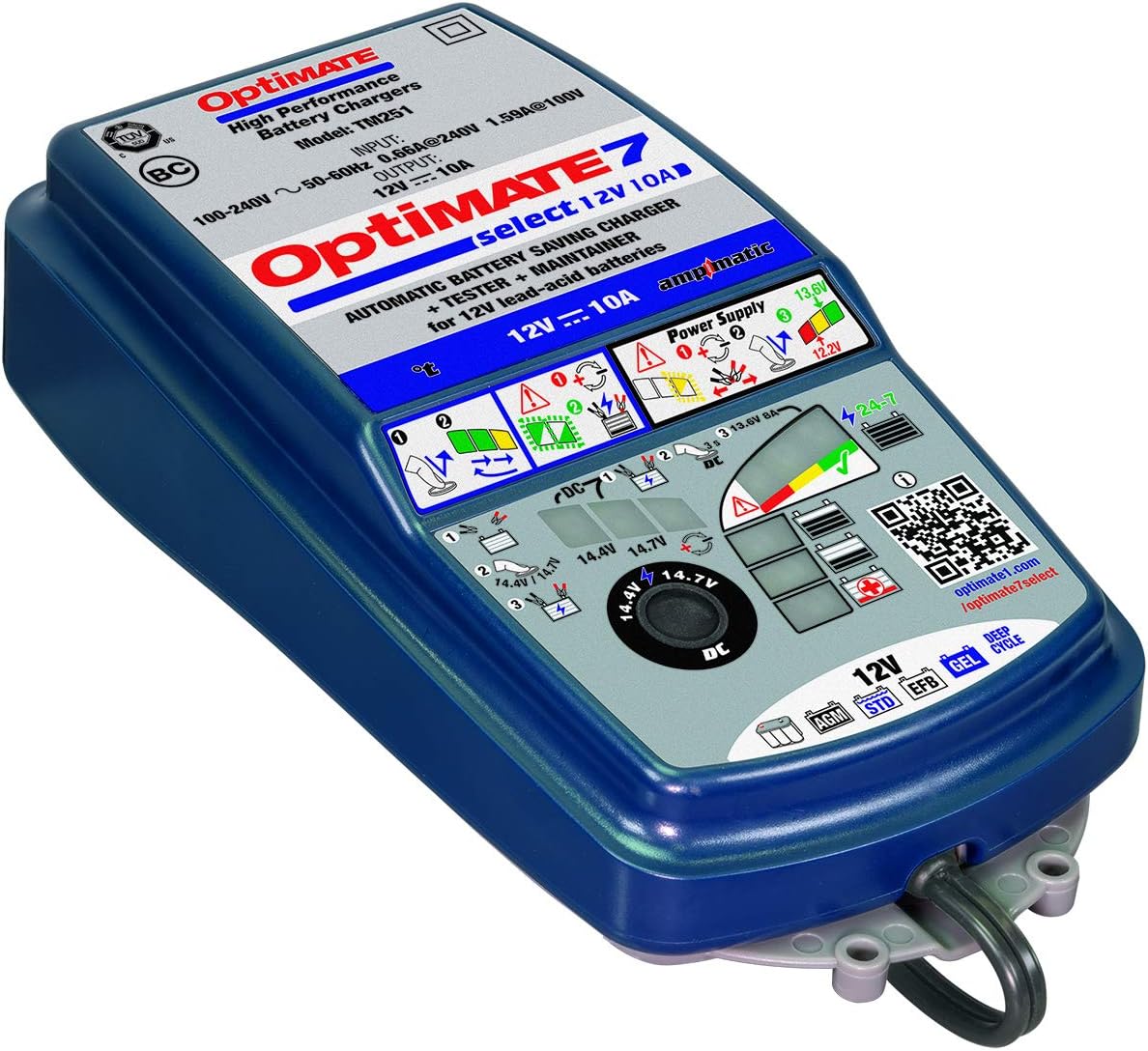 Optimate 7 Select, TM-251, 9-Step 12V 10A Sealed Battery Saving Charger & maintainer