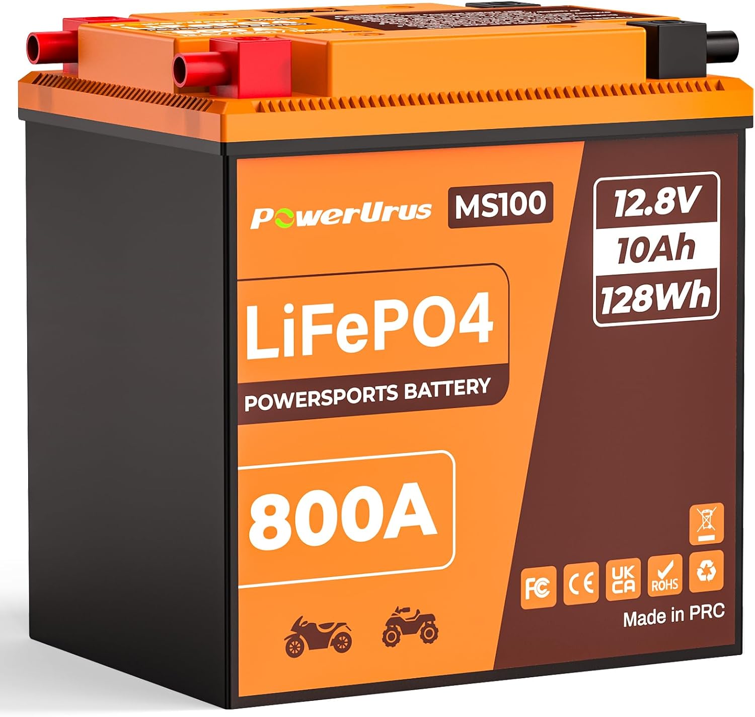 Lithium Motorcycle Battery, PowerUrus 800A Lithium LiFePO4 Motorcycle Battery, 12V 10Ah Powersports battery, ATV, UTV, Jet Ski, Quad, PWC, 4 Wheeler, Lawn Mower, Tractor, Scooter, Generator Batteries