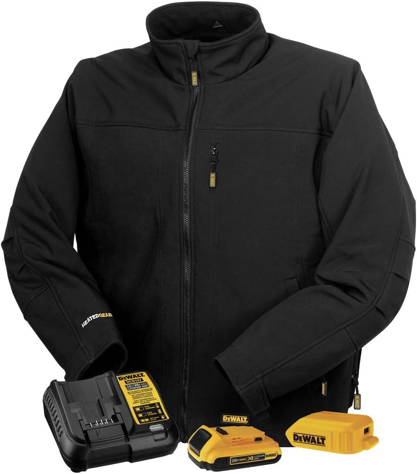 DEWALT Men's Heated Soft Shell Jacket Kit Black Large
