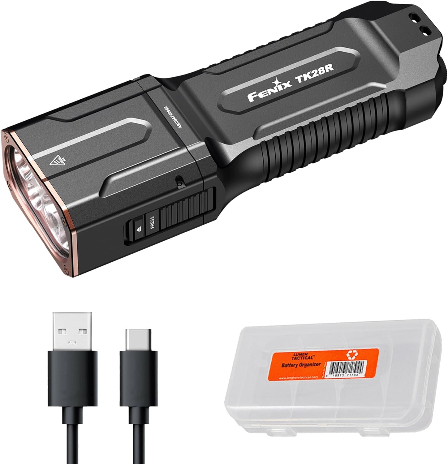 Fenix TK28R Tactical Flashlight, 6500 Lumen LED Rechargeable Flashlight with Red Light, USB Fast Charging, IP68 Waterproof, Long Throw 437 Yards for Law Enforcement & Outdoor with Lumentac Organizer