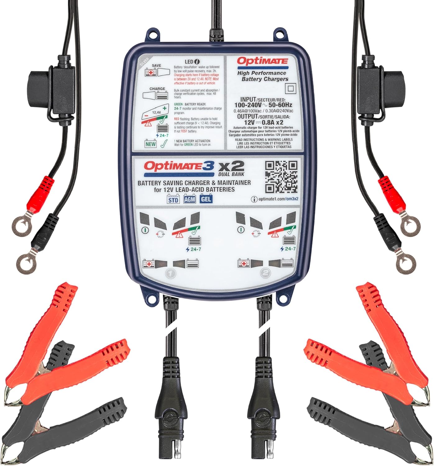 Optimate 3 Dual Bank, TM-451, 7-Step 2x12V 0.8A Sealed Battery Saving Charger & maintainer