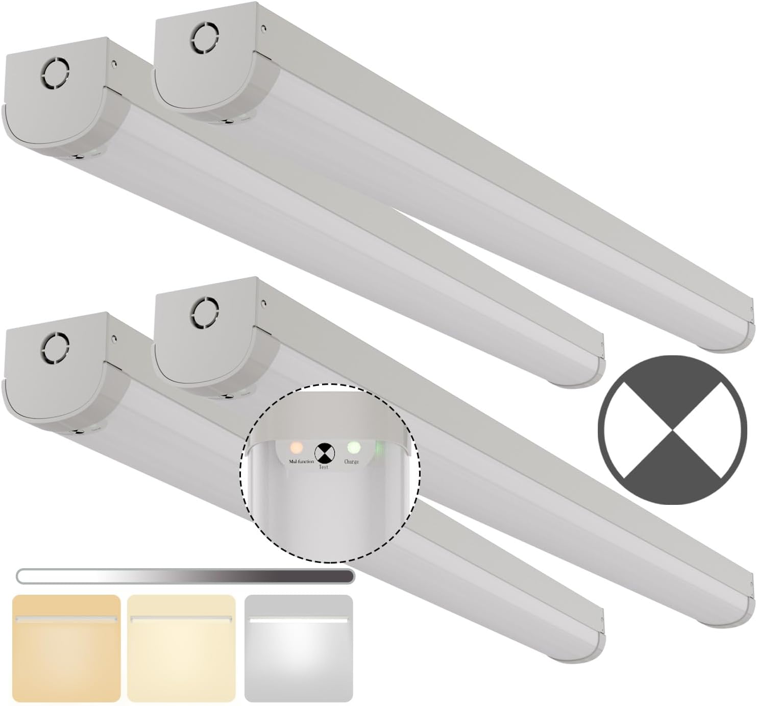 4 Pack 4FT LED Linear Strip Emergency Stairwell Light, 3 CCT Selectable, 20W/40W, 2500lm/5000lm, Battery Backup, 30K/40K/50K, IP20, 0-10V Dimmable 4 Foot Commercial LED Shop Ceiling Light Fixture, ETL
