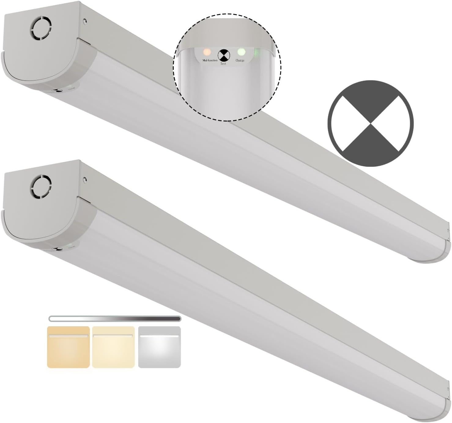 2 Pack 2FT LED Linear Strip Emergency Stairwell Light, 3 CCT Selectable, 10W/20W, 1250lm/2500lm, Battery Backup, 30K/40K/50K, IP20, 0-10V Dimmable 2 Foot Commercial LED Shop Ceiling Light Fixture, ETL