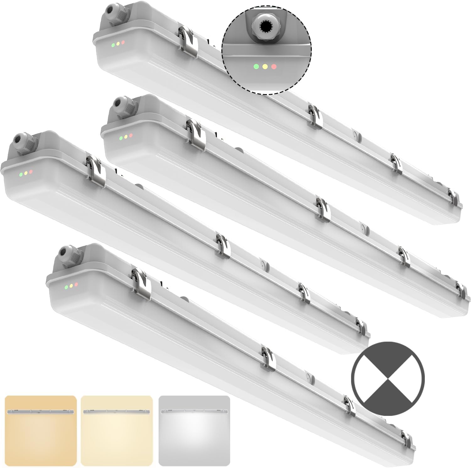 4FT LED Vapor Tight Emergency Light, Battery Backup, IP65 IK08, 20W(2500lm)/40W(5000lm), 3/4/5000K CCT Selectable, Outdoor Waterproof Shop Light, Vapor Proof Lighting Fixture for Carport, FCC 4-Pack