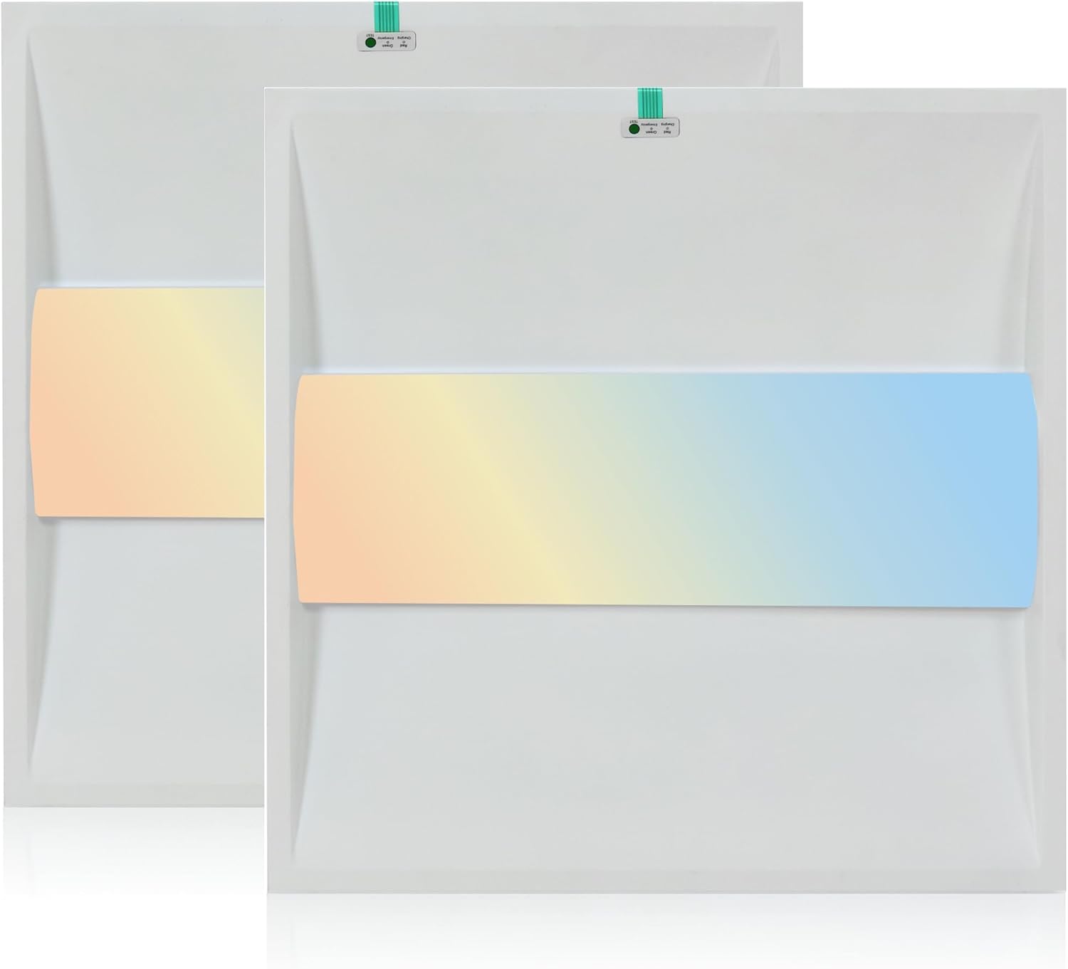 2x2 FT Center Basket LED Troffer Panel Light with Build-in Emergency Backup Battery, 40W-3000K/4000K/5000K, 0-10V Dimmable, 5200 Lumens, LED Drop Ceiling Light, 100-277V, DLC and UL Listed(2 Pack)