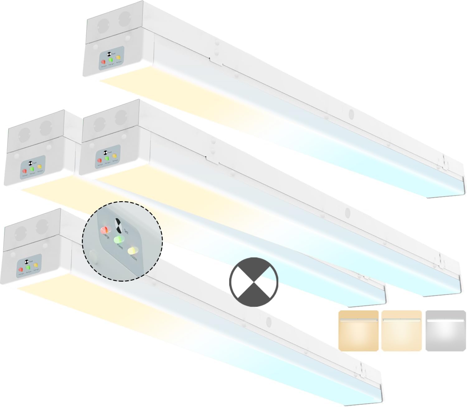4FT LED Wraparound Emergency Stairwell Light, Battery Backup, IP20, 20W(2500lm)/40W(5000lm), 3/4/5000K CCT Selectable, 100-277V, Flush Mount Commercial LED Wrap Shop Ceiling Light Fixture, FCC, 4-Pack