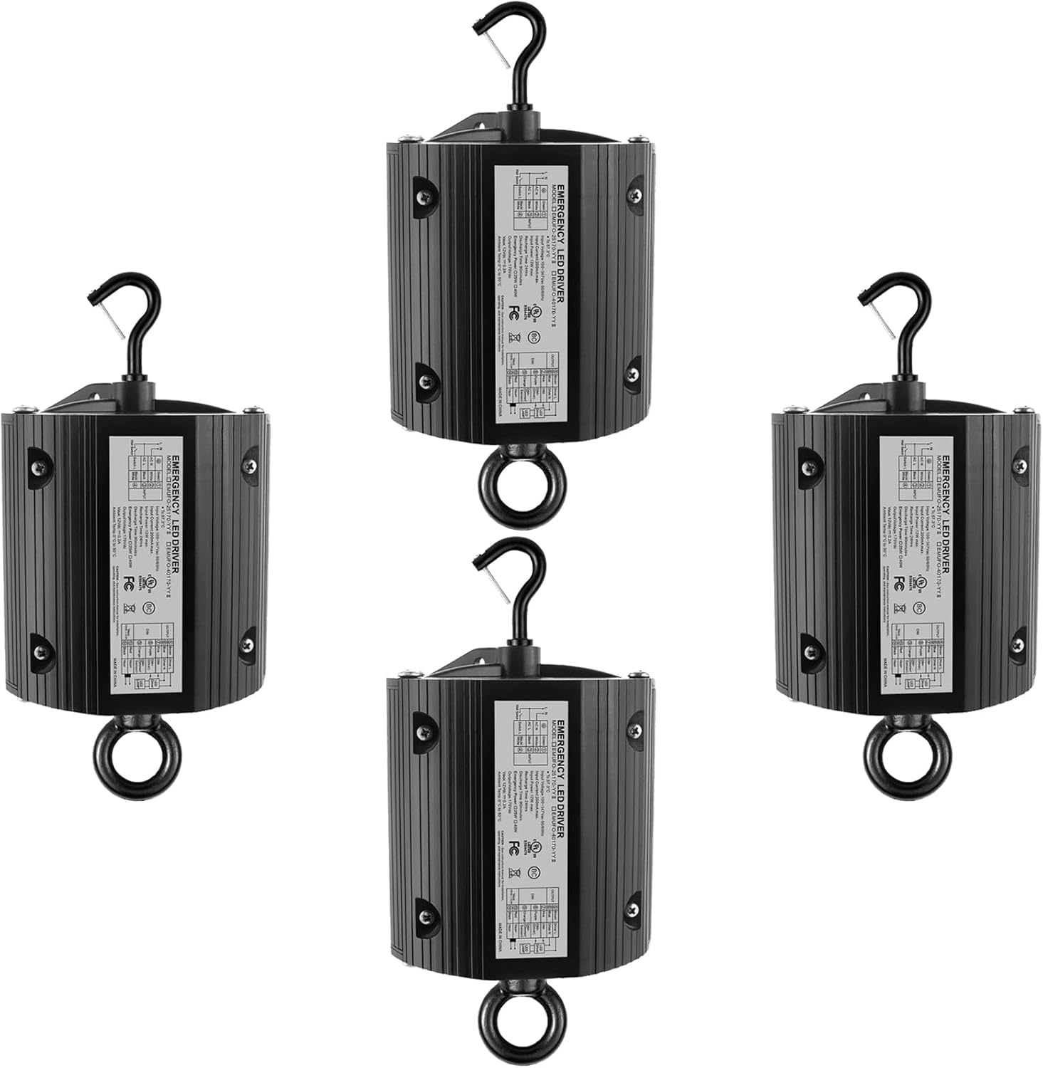 40W LED Emergency Backup Driver for Dimmable UFO LED High Bay Light, Rechargeable UL Listed Backup Battery, Emergency Time 90 Minutes, Input AC 100-347V Output DC 170V, 5 Year Warranty (4 Pack)