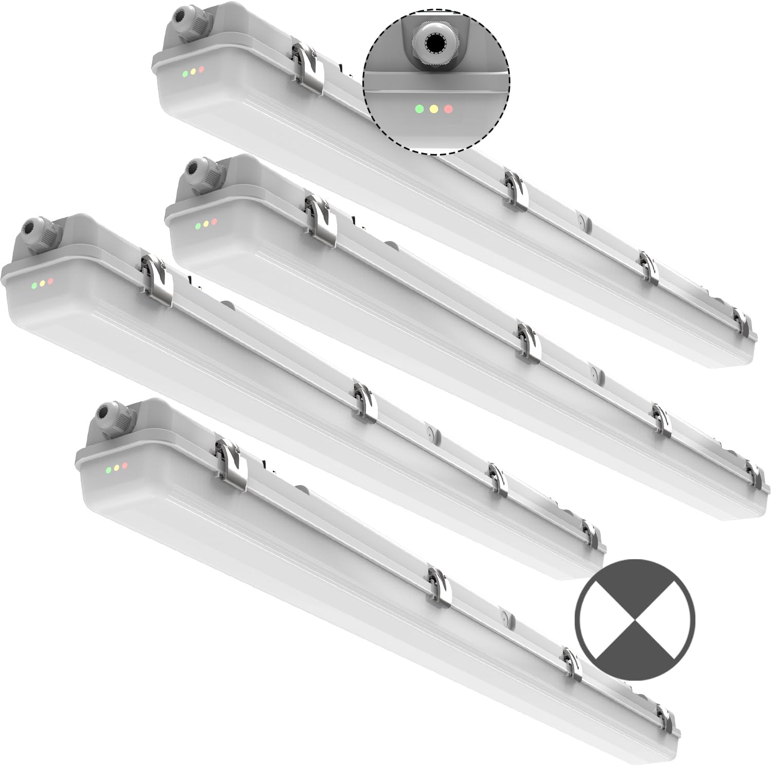 4FT LED Vapor Tight Emergency Light, Battery Backup, IP65 IK08, 20W(2500lm)/40W(5000lm) Selectable, 5000K, 100-277V, Outdoor Waterproof Shop Light, Vapor Proof Lighting Fixture for Carport, FCC 4-Pack