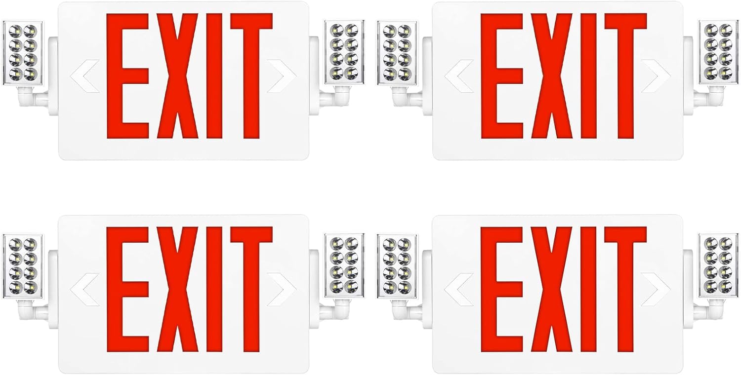 SPCETSUN 4 Packs Red Exit Sign with Emergency Lights,LED Emergency Exit Light with Battery Backup,UL Listed, AC 120/277V,Double Face Commercial Emergency Exit Light Combo for Business.