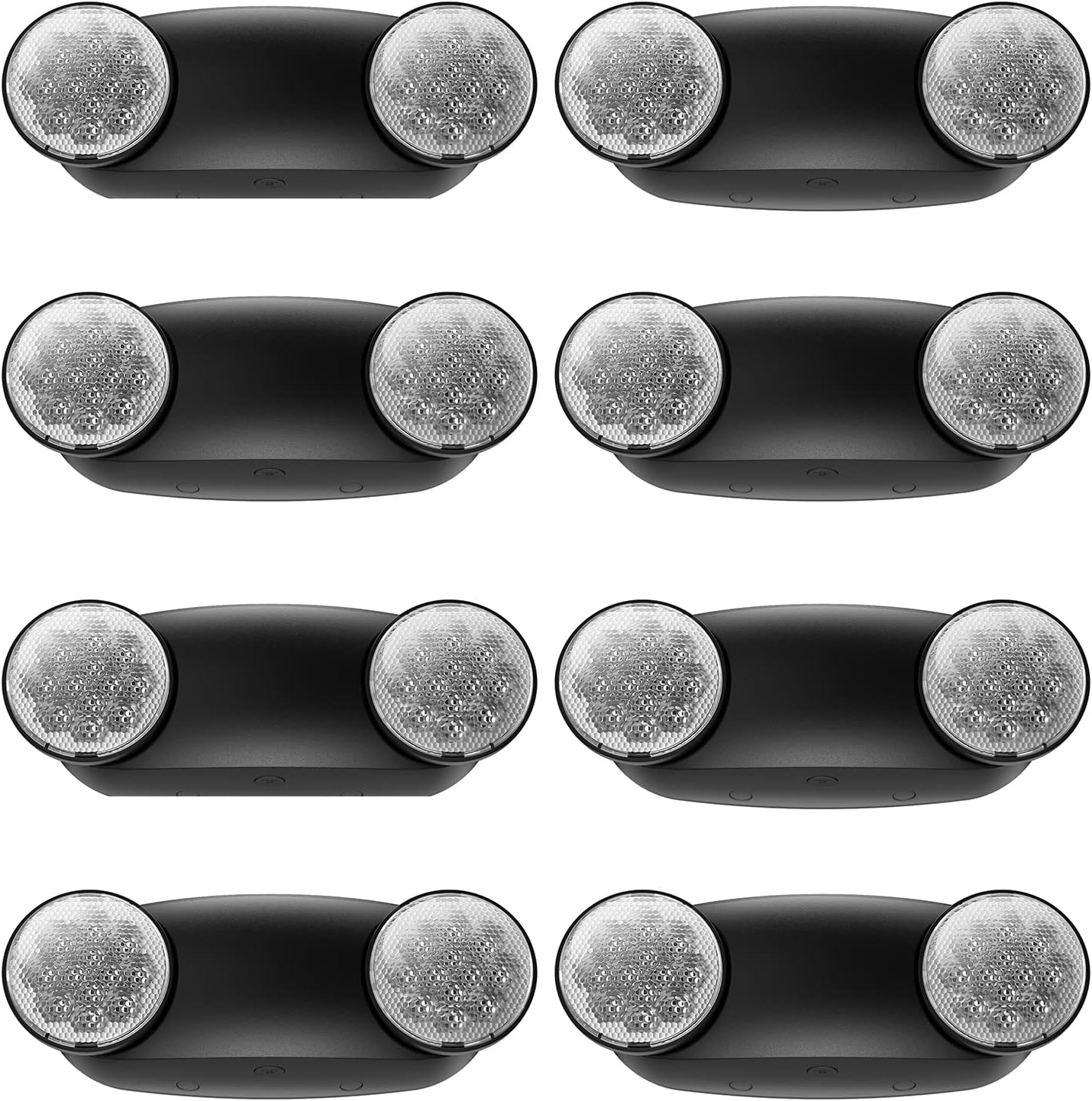 SPECTSUN 8 Pack Black Led Exit Sign with Emergency Lights &Battery Backup -Adjustable Hardwired 2 LED Head-UL Certified-120-277VAC