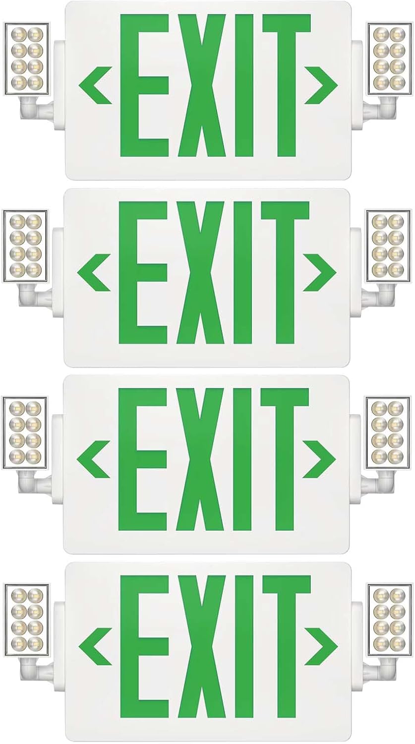 Spectsun 4 Packs Exit Signs with Emergency Lights,120-277VAC -LED Combo Emergency Light with Backup Battery-Double Face UL Listed Green Letter Exit Sign Lighting-Hard Wired-Fire Resistant